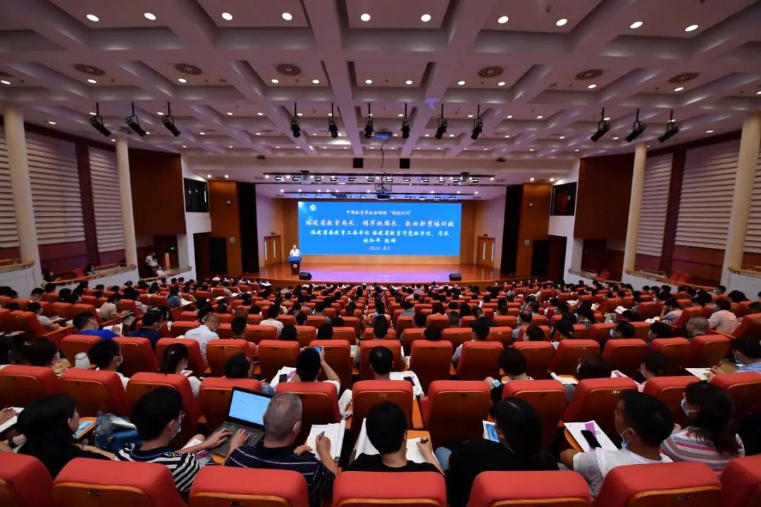 8月2日,福建省市县教育局长、领军校园长、教坛新秀培训班在厦门国家会计学院开班。教育部原副部长、中国教育学会会长朱之文,省委教育工委书记、省教育厅党组书记、厅长林和平,厦门国家会计学院党委书记韩景义,中国教育学会“领航计划”专家委员会副主任、福建省项目组组长朱卫国,省教育厅党组成员、副厅长吴伟平出席开班式。学会有关专家,培训班学员近500人参加。