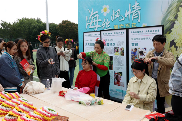 现场还安排了以福建特色“福”文化为主线串联的“优秀传统文化进校园”游园会。福州“三宝”之称的漆艺、寿山石雕和软木画工艺作品及技艺集中亮相;国家级非遗浦城剪纸技艺代表性传承人周冬梅老师现场展示“字中有画、画中有字”的剪纸技艺;蟳埔女习俗传承人黄晨老师带领大家体验簪花围;《梦华录》点茶团队技术指导带来古韵悠长、原汁原味的茶百戏展示;试汉服、与又大又萌的朱子卡通人偶合影留念……师生们通过完成游园任务、体验“五福”游戏。