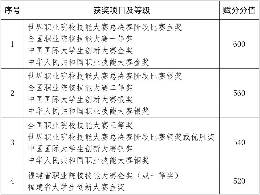 (1)获奖考生是指在高职(专科)学习阶段代表我省及本校获得全国职业院校技能大赛一、二、三等奖,世界职业院校技能大赛总决赛阶段(含争夺赛、排位赛、冠军总决赛三个阶段,下同)比赛金奖、银奖、铜奖和优胜奖,中国国际大学生创新大赛(原中国国际“互联网+”大学生创新创业大赛,下同)和中华人民共和国职业技能大赛金奖、银奖、铜奖,福建省职业院校技能大赛金奖(或一等奖),以及福建省大学生创新大赛(原福建省“互联网+”大学生创新创业大赛,下同)金奖的高职(专科)层次2026年应届毕业生(含普通考生和退役大学生士兵考生,简称“获奖考生”)。