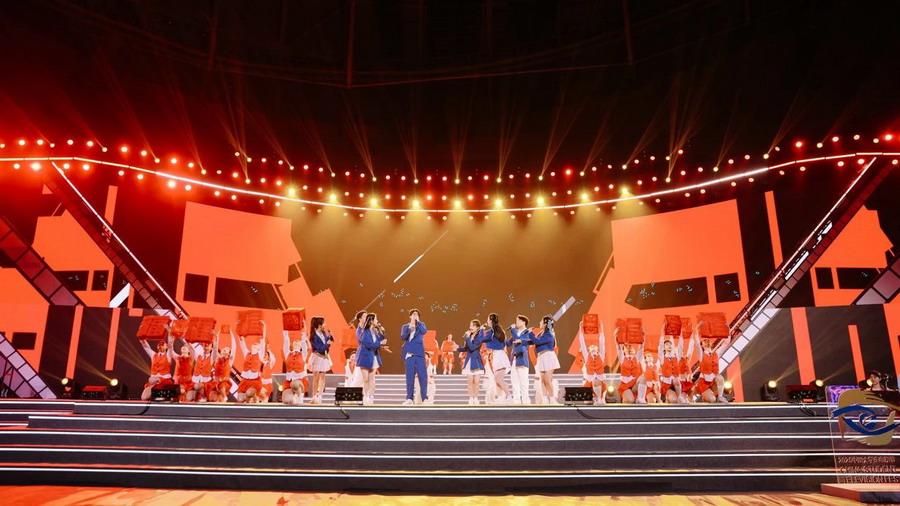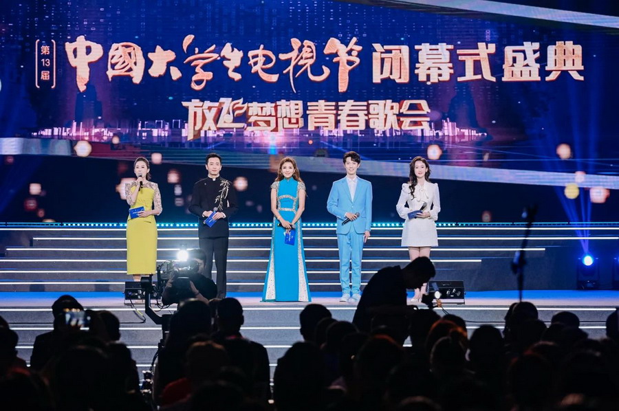 由张可盈、金圣权和大学生代表们共同带来的开场歌舞——中国大学生电视节主题歌《梦想》,激昂的青春律动,诠释着新时代青年炙热的青春激情,拉开盛典序幕;蔡国庆、万妮达带来《三百六十五个祝福》《同一首歌》老歌新唱,致敬经典的同时表达着对创新的不懈追求;乌兰图雅带来的《一起跳舞吧》、孙砾演唱的《世界赠予我的》,将年轻人充满活力、爱拼敢闯、昂扬向上的青春风采尽情展现;福州歌手万妮达带来方言歌曲《七溜八溜》,形式创新、贴近时代,让丰富多元、别有韵味的福州文化跃然舞台;倪萍在《告白更年轻的你们》主题演讲中寄语青年群体,要抓住时代机遇,珍惜青春年华,在新时代征程中绽放出青春最绚丽的光彩;李斯丹妮再唱台湾经典校园歌曲《兰花草》,来自福州市闽都文化艺术中心的舞蹈演员们将福州传统妆束技艺“三条簪”与《兰花草》创新融合,不仅展现了非遗文化的现代生命力,更通过艺术形式传递了两岸同胞同根同源、文化相通的深厚情感;阎维文、付芮共同演绎的歌曲《春风十万里》恢弘大气,融合时代主题与艺术美感,充满诗意与温度。现场数千名大学生在拉歌环节共同唱响“我的学校我的歌”,将青春的激情洒满全场——《外婆的澎湖湾》《年轻的朋友来相会》《歌声与微笑》等经典歌曲带领观众感念过去的辉煌岁月,展望未来的美好生活。