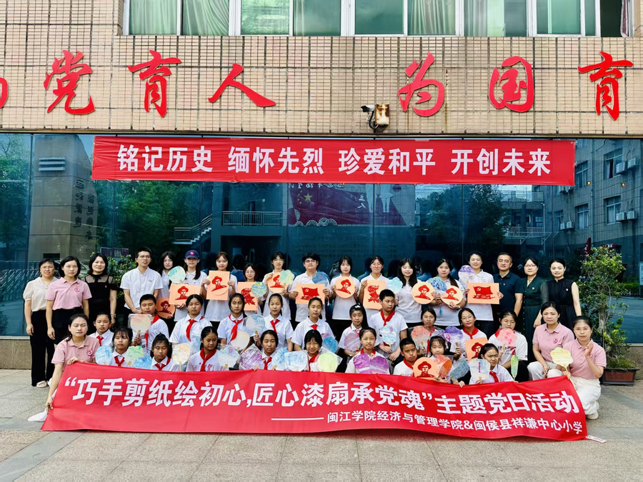 在“9·30烈士纪念日”来临之际,近日,闽江学院经济与管理学院学生第四党支部、闽江学院林祥谦精神研习社与闽侯县祥谦中心小学学区协同举办“巧手剪纸绘初心,匠心漆扇承党魂”主题党日活动。