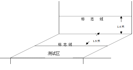 在墙面距地面高度1.40米处设一标志线;在地面距墙壁1.50米处划一标志线(图2)。