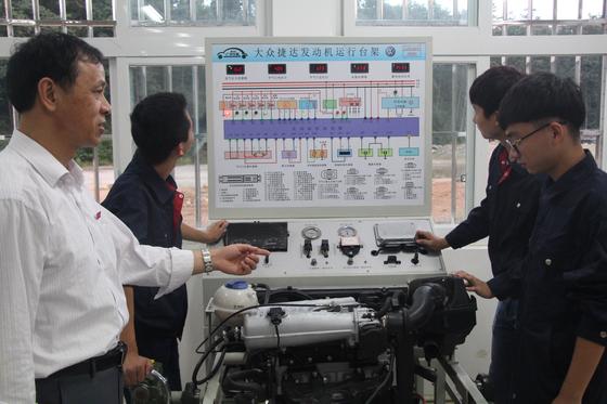 学院以“二元制”为抓手,大力推进产教融合,校企资源共享互补。优秀技师成了学校教师,学校教师成了企业技师,全面落实教师下企业顶岗实践实习制度、访问工程师制度、教师与企业“1+1”联系制度。“专业教师每学年至少有2个月时间在企业挂职实践,再根据实践反思不断优化教学设计,使课堂教学与生产实际无缝对接。”王树生说,“校企合作是物理的‘1+1’,而‘二元制’让学校和企业真正发生化学反应,实现‘1+1>2’的效果。”