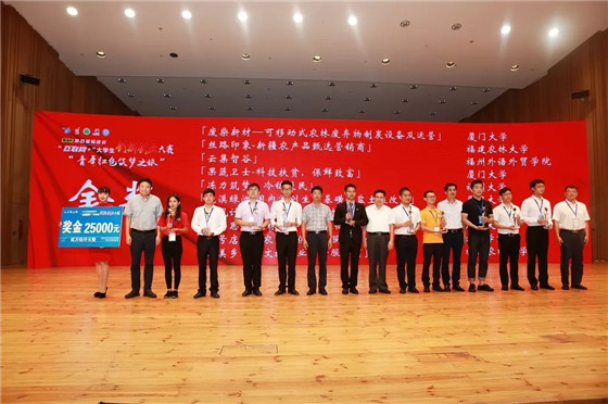 经过紧张激烈地角逐,决出主赛金奖20个、银奖30个、铜奖50个、优秀组织奖8所、优秀指导老师奖50名;“青年红色筑梦之旅”赛道决出金奖10个、银奖15个、铜奖20个,“青年红色筑梦之旅”高校集体奖10个、“乡村振兴奖”5个、“精准扶贫奖”5个、优秀创新创业导师25名。