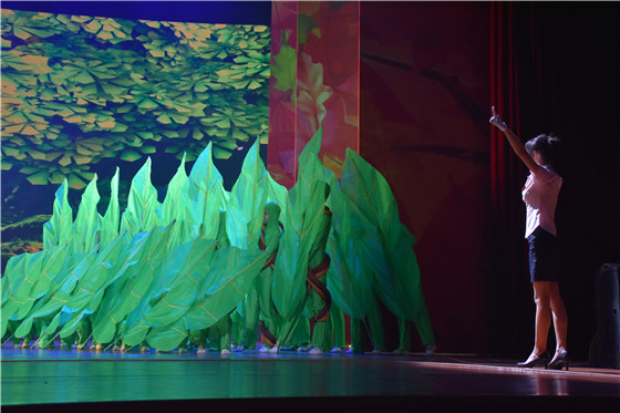 三明市特殊教育学校学生在手语老师的指挥下表演舞蹈《绿叶对根的情感》