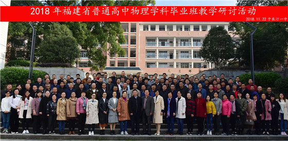 11月20日—22日,2018年福建省普通高中物理学科毕业班教学研讨活动在长汀举办。100多位来自全省各设区市高中物理教研员、骨干教师代表参加活动。活动主要内容包括2018年福建省高考物理学科质量分析、高三复习教学研讨和高中教学观摩研讨。