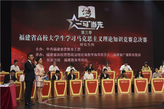 由中共福建省委教育工委主办,福建省高校思想政治理论课教学指导委员会、省广播影视集团、东南卫视、福建教育电视台承办的第三季福建省高校大学生学习马克思主义理论“一‘马’当先”知识竞赛于2018年5月启动,并于10月至11月分为研究生组、本科生组和高职高专组三个组别,进行了晋级赛、半决赛、总决赛,东南卫视、福建教育电视台对比赛进行了现场录制。