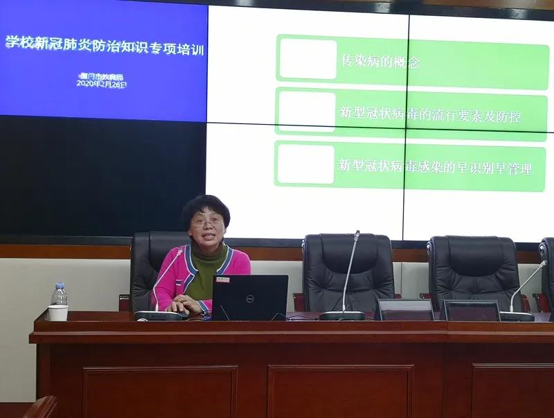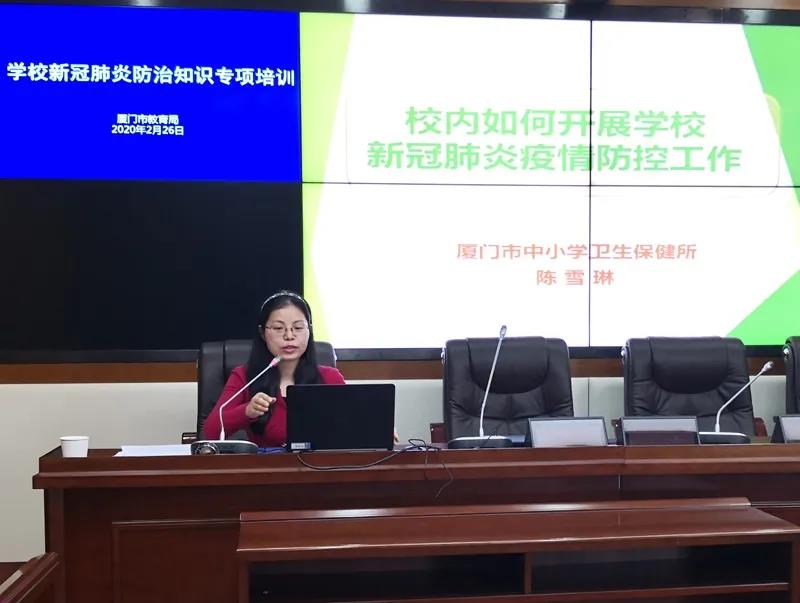 厦门市中小学卫生保健所副主任医师陈雪琳作《校内如何开展新冠肺炎疫情防控工作》培训