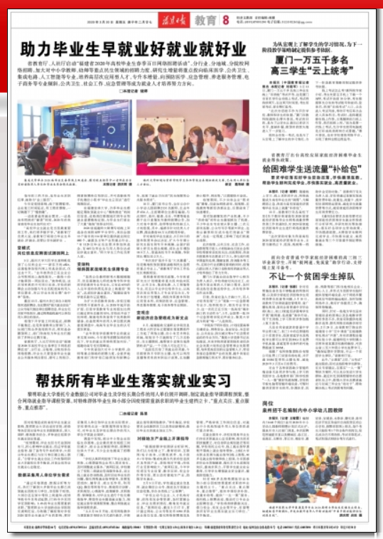 省教育厅、人社厅启动“福建省2020年高校毕业生春季百日网络招聘活动”,分行业、分地域、分院校网络招聘。加大对中小学教师、幼师等重点民生领域的招聘力度。研究生增量将重点投向临床医学、公共卫生、集成电路、人工智能等专业,培养高层次应用型人才。专升本增量,向预防医学、应急管理、养老服务管理、电子商务等专业倾斜。公共卫生、社会工作、应急管理等成为就业人才培养努力方向。