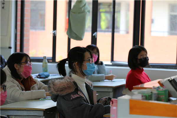 下午3时,同学们进入正式的课堂学习。范旭东介绍,小班化教学其实对高三的复习更为有效,有利于老师和学生进行充分的沟通。“线上教学和线下教学毕竟有差距,所以开学前两周我们先不着急往下教学,主要是巩固线上教学的知识,帮助学生线上和线下学习相结合,然后再开展新一阶段的复习。”