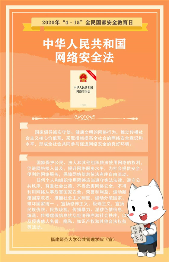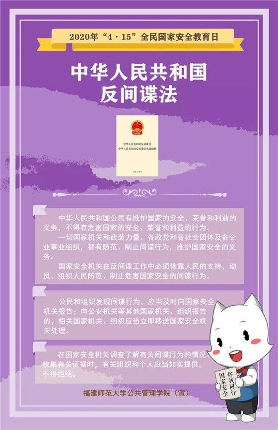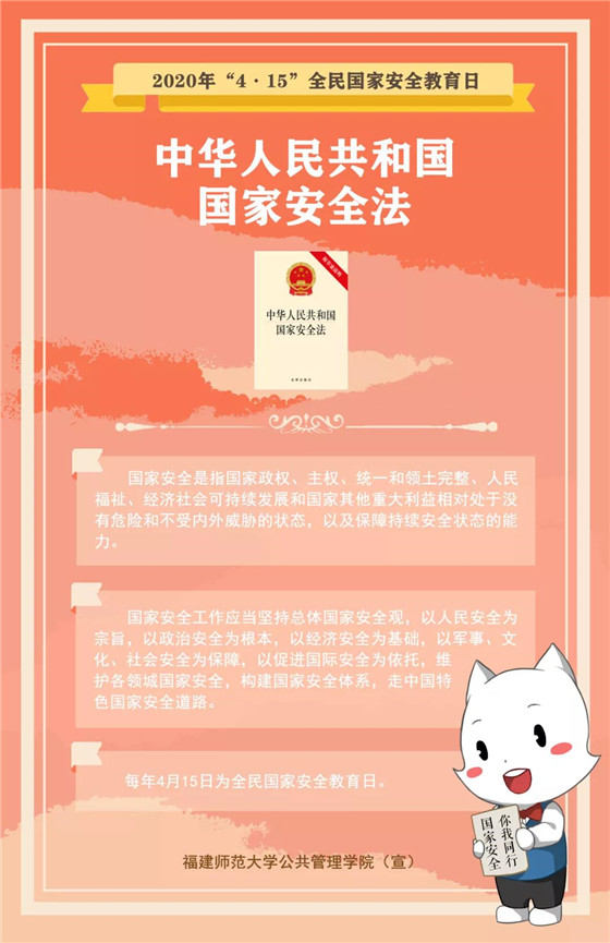 在第五个“4·15”全民国家安全教育日来临之际,福建师范大学公共管理学院举办“国家安全,你我同行”全民国家安全教育日系列教育活动。学院利用“云”晚点面向全院学生开展国家安全教育普法宣讲。