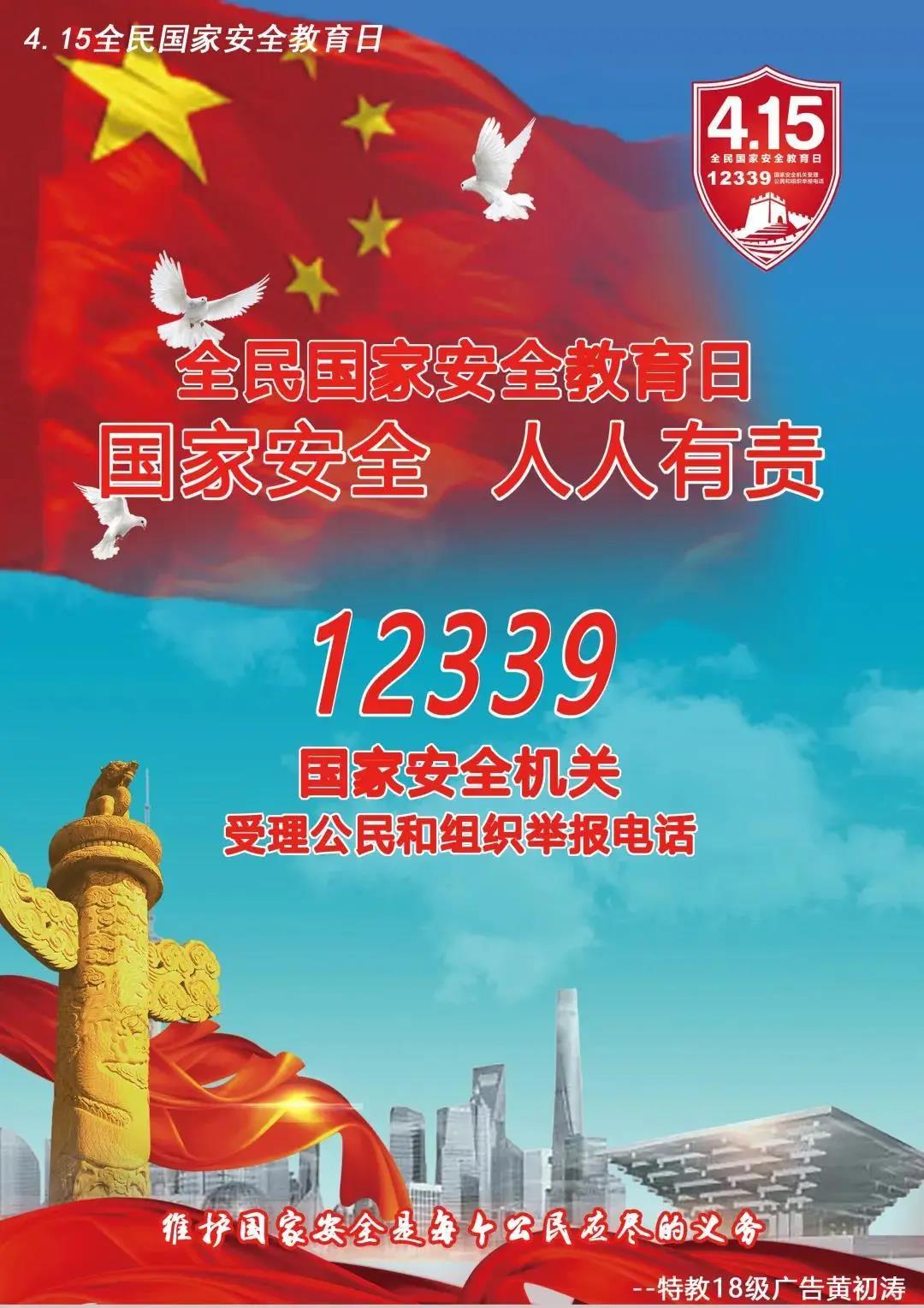 在第五个全民国家安全教育日来临前,学院特殊职业教育系党支部还以党建带团建,开展了为期三天的国家安全线上专题教育工作,并结合专业特长,进行国家安全教育日主题海报创作。