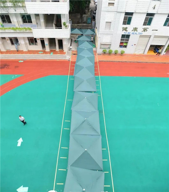 厦门外国语学校附属小学用25把凉伞为孩子挡风遮雨