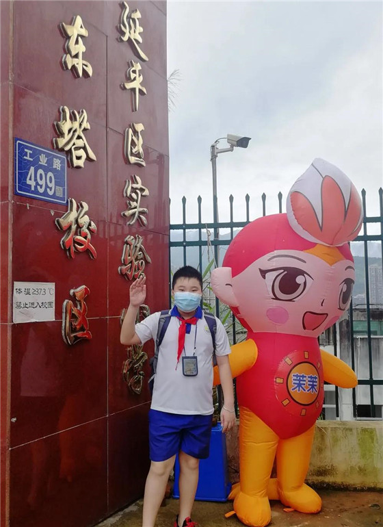 南平市延平区实验小学东塔校区的吉祥物欢迎孩子们“回家”