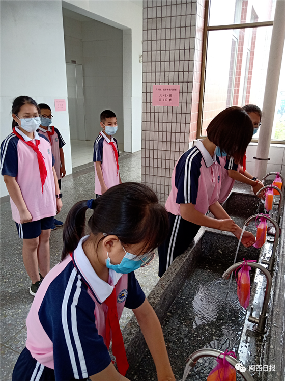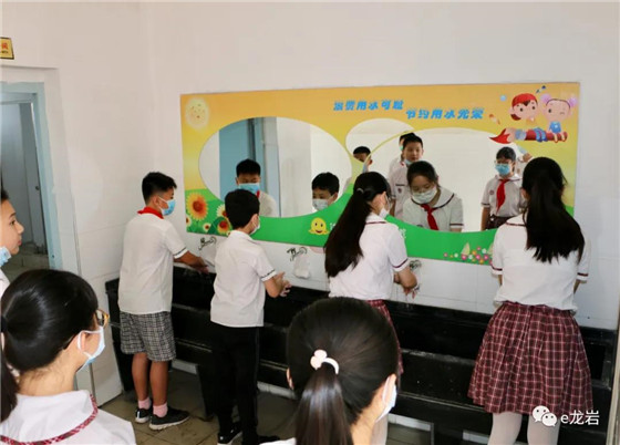 龙岩松涛小学分校和龙岩师范附小分校学生下课时排队洗手