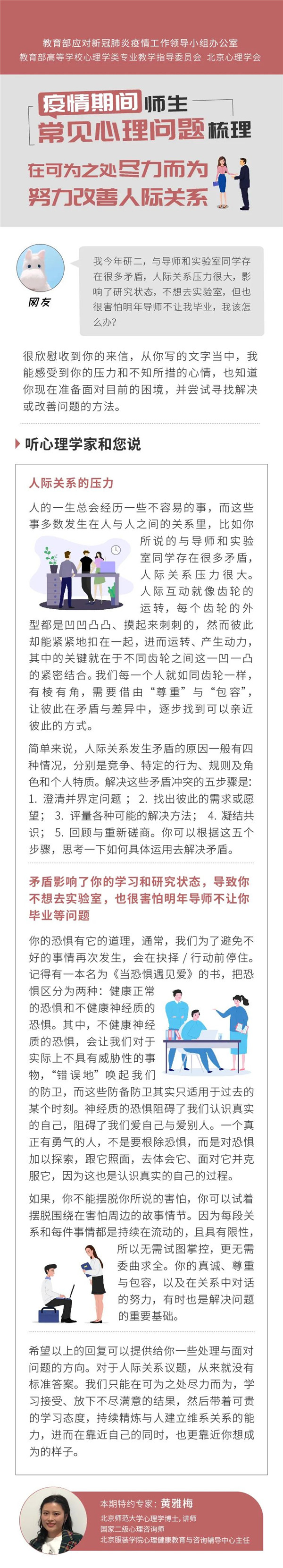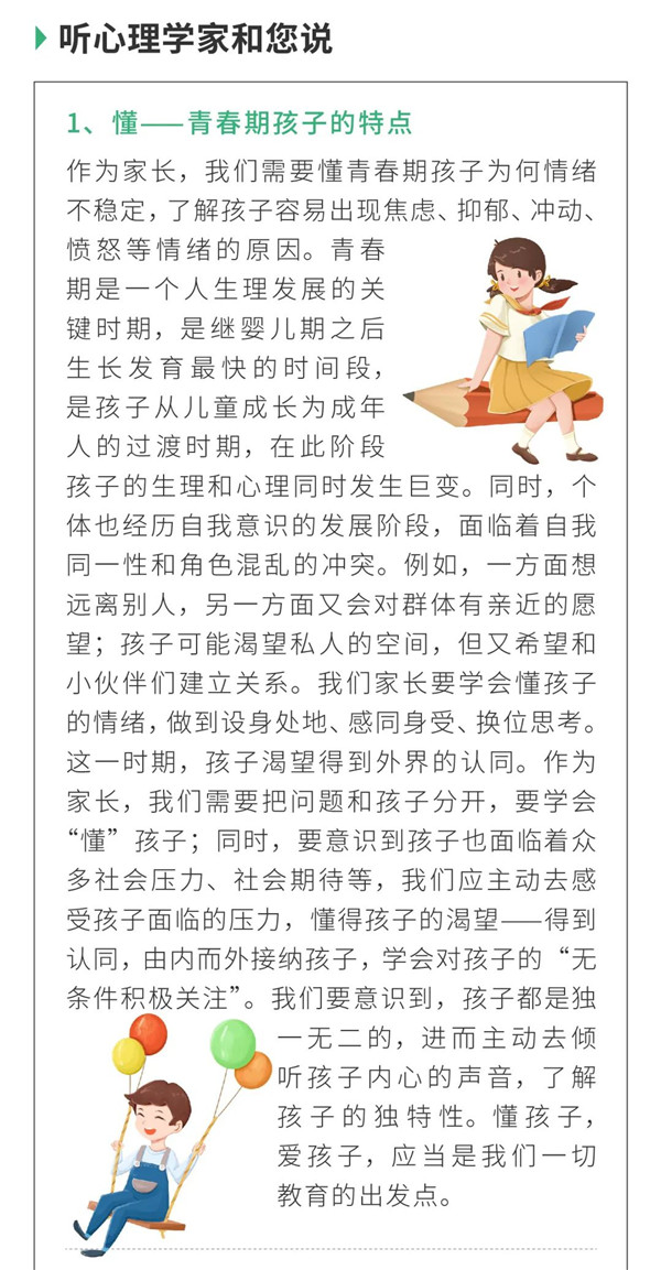 如何与青春期孩子进行良好沟通?如何处理好人际关系?今天我们推出《用“心”陪伴》第(5)期,就随小编一起来听北京交通大学心理素质教育中心副主任张驰,北京服装学院心理健康教育与咨询辅导中心主任黄雅梅详解,疫情期间师生常见心理问题如何调整↓↓↓