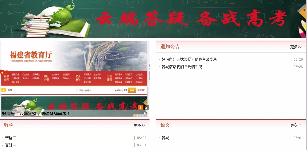为帮助全省高三考生及社会考生答疑解惑,省教育厅网站专门开设《云端答疑备战高考》专栏,邀请省普教室学科教研员和省级示范性建设高中一线名师为全省考生进行学科答疑和心理解惑。从6月1日开始,考生们提出的具有共性和代表性的问题已经陆续由相关名师进行解答,并通过省教育厅网站进行推送。