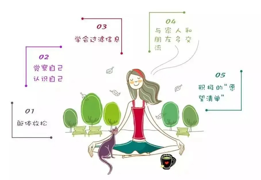 这些方法并非十全十美,但为放松身心、减轻压力、改善睡眠、促进人际关系、提高效能等提供了简单可行的方式,建议同学们根据自己实际情况选择适合自己的方法进行自我调节。