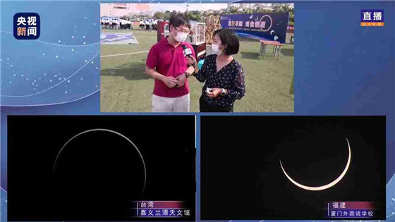 由于食分大,环食时间长,厦门也是最佳观测地之一。央视将其中一个直播点设在了厦门外国语学校。