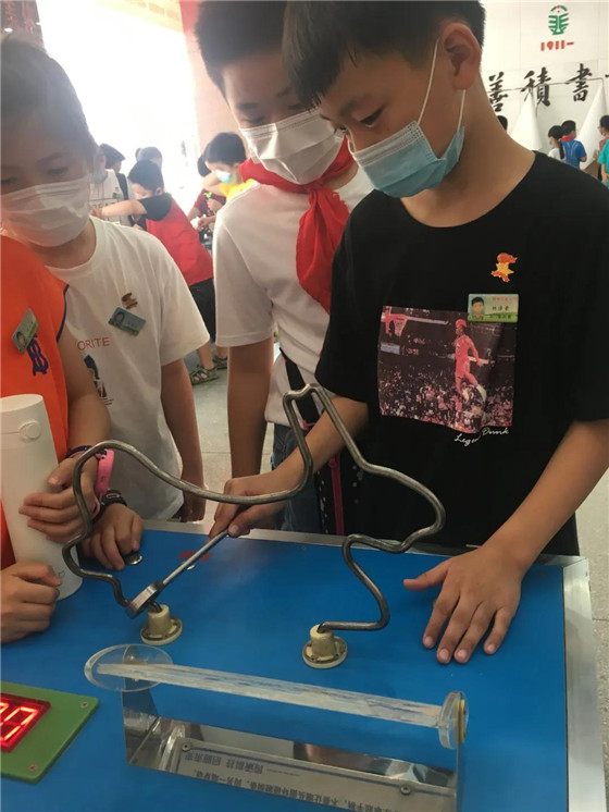 同学们还围在光学、力学、电磁学、电学等学科知识的科学操作台前,动手体验、认真观察,了解每件科技作品背后暗藏的科学原理,亲身感受到科学的神奇。