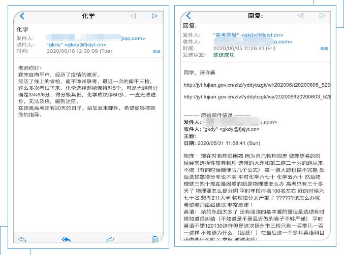 考生邮件和名师回复截图