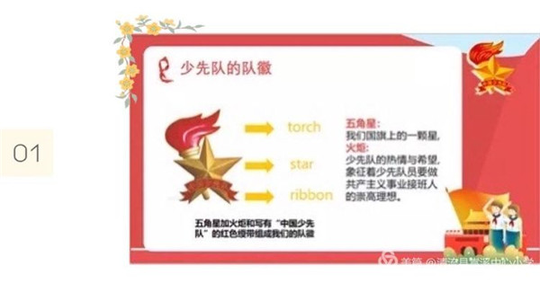 在思政课上,实践队队员为同学们介绍了少先队的建队历史,并结合自身的英语专业特色,教给少先队员们相关的英文表达,鼓励他们立志向、修品行、练本领,从小培养热爱党、热爱祖国、热爱人民的情怀。