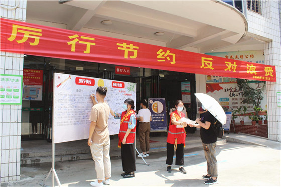 学校向全校师生发出《“厉行节约反对浪费”倡议书》,号召师生“树牢节约理念,共塑俭约风尚;践行‘光盘行动’,节约每粒粮食;倡导厉行节俭,杜绝铺张浪费。”
