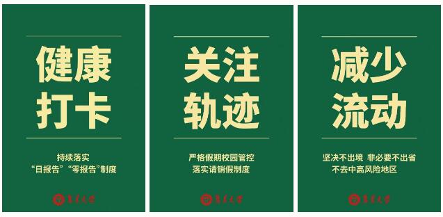 集美大学制作疫情防控海报,倡议师生健康打卡,持续落实“日报告”“零报告”制度,严格遵守假期校园管控请销假制度。