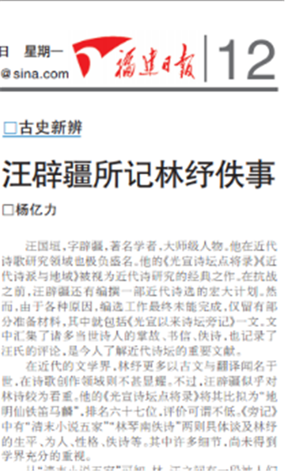 样板支部党员撰写《汪辟疆所记林纾佚事》