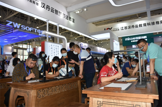 随着5G、大数据、互联网、人工智能等新技术与教育教学深度融合,未来智慧校园、智慧教室将会更多地出现在我们生活中。江苏汉丹云科技和北京华文众合科技等参展企业带来的书法教室整体解决方案,让学生在临摹台可以查看、学习、练习、临摹书法教学内容,让孩子们可以更加高效有趣地学好汉语、写好汉字。当天,书法进藏纪录片《白玛的心愿》首映式也隆重举行,影片讲述的是关于西藏那曲市夏玛乡中心小学的学生白玛完成学习汉字、练习书法愿望的故事,拍摄团队采用原班人马,用纪实的手法,还原了智慧书法教育的进藏之路。