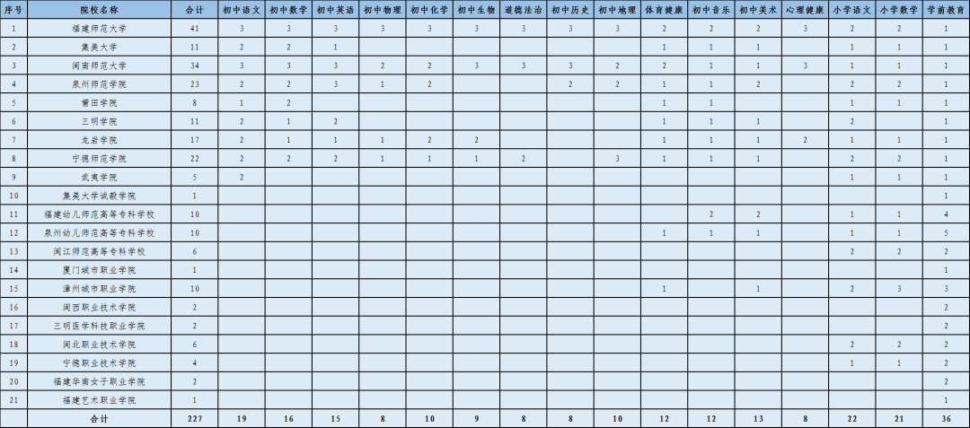 第八届福建省高校师范生教学技能大赛决赛名额安排表