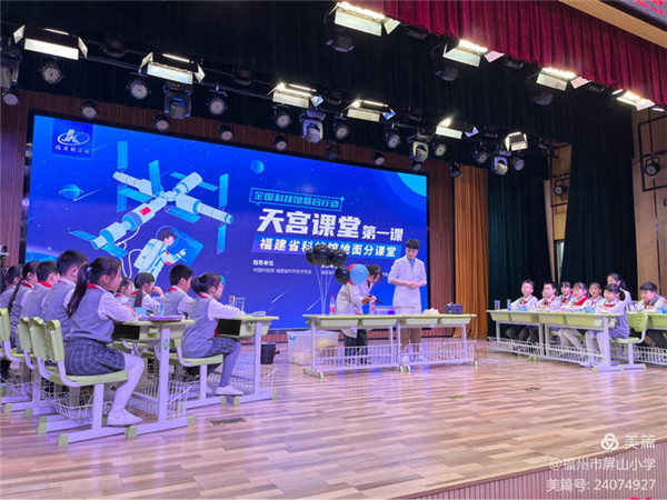 昨天下午,福建省科技馆地面分课堂设立在福州屏山小学,科普专家面对面为屏山小学学生开展科技互动,现场学生以两人一组,跟随3名航天员进行地面同步操作。孩子们在观看和实操过程中,感知宇宙的奥秘,体验探索的乐趣。