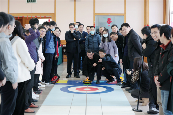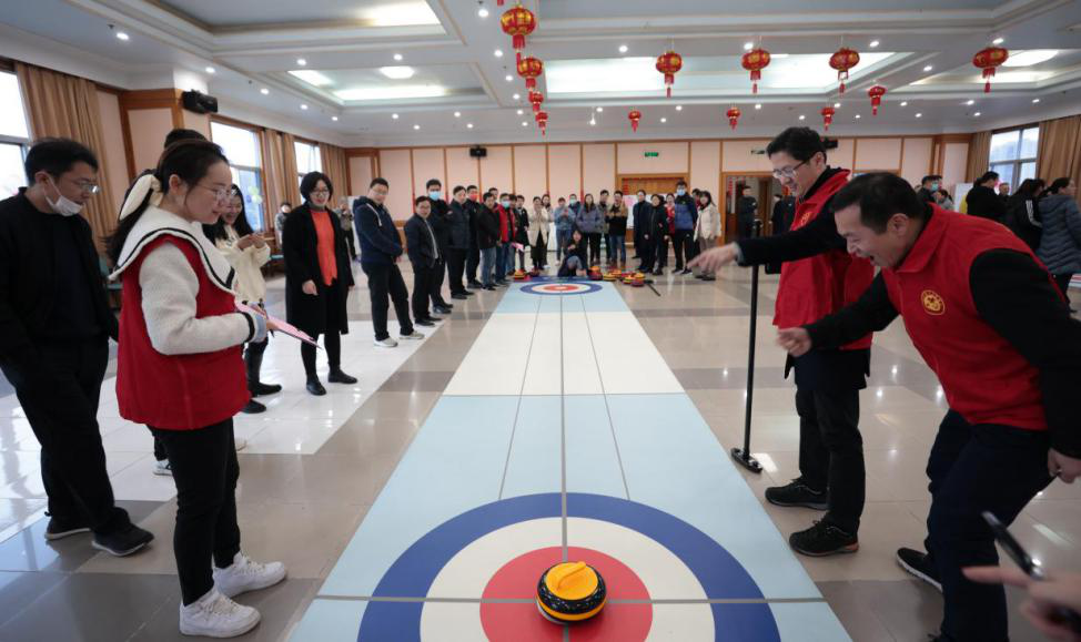 屏气凝神,轻舒手臂,随着靓丽的壶影直击圆心,红黄两色冰壶交替滑动,现场一片欢声雷动。活动设积分赛、对抗赛、循环赛等环节,干部职工以工会小组为单位参与其中。队员们群策群力,排兵布阵,力求攻守兼备,观众热情高涨,现场气氛热闹非凡。