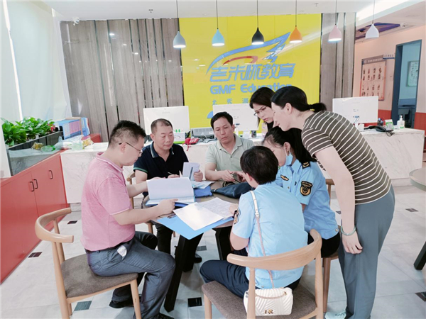 一是“盯”线索。紧盯举报线索,查找隐形变异。根据举报电话、12345平台上提供的线索,立即组织人员赴现场查处。如8月15日下午,区教育局、区市场监督管理局和东乾社区等工作人员根据举报到丹蓉新村善进托管进行巡查,发现有十来个学生在做题,当场下达整改通知书,要求立即停止学科培训活动。