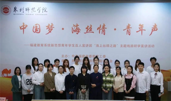 为深入开展学习贯彻习近平新时代中国特色社会主义思想主题教育,贯彻落实党的二十大精神,根据中共福建省委教育工委部署,由泉州师范学院牵头举办,5月11日下午,福建教育系统新思想青年学生百人宣讲团开展“海上丝绸之路”主题线路宣讲活动,共有5所高校的约100名师生参加。