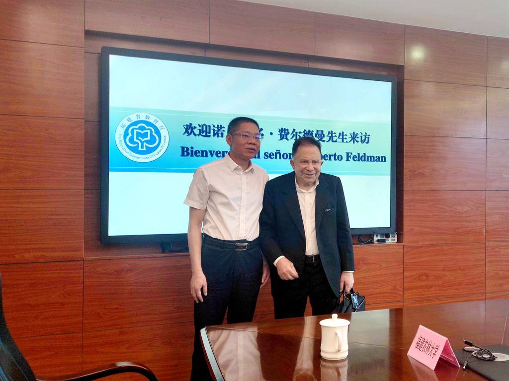 6月13日,福建省“荣誉公民”、原阿根廷-中国人民友好协会会长诺贝尔多·费尔德曼先生到访福建省教育厅。省教育厅党组成员、副厅长王飏热情接待并主持召开座谈会。福州大学、福建师范大学、福建农林大学、福建理工大学、厦门理工学院、闽江学院等省内高校代表参加座谈。