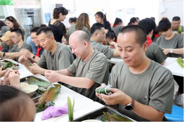 “九年磨一剑,即将试锋芒”,端午之后,学生们将迎来一年一度的中考,“粽”有寓意“高中”之意。为给学生过个有意义的节日,缓解备考的压力,泉州培元中学初三所有班主任和学生齐聚食堂,开展了一场别开生面的“端午包粽子”活动。“一折叶、二盛料、三压实、四包严、五扎绳……”“这个糯米放多了,这个粽子可大了,学生们肯定高中!”“老师,你包的粽子有什么寓意?”活动中大家你一言我一语,不一会,一只只粽子在众人的手中诞生了。