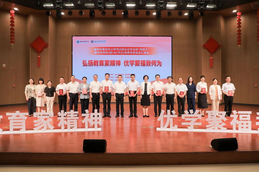 福州市教育局坚持以榜样力量激发教师群体的职业认同感与使命感,于2022年7月启动实施福州市优秀校(园)长(书记)培养项目,项目以“为福州教育培养卓越领航者”为目标,历时两年半,分六个阶段开展进阶培育,通过集中理论研修、名校跟岗实践、导师入校诊断,汇报交流展示等形式,打造全路径、立体化培养体系。培养项目结业汇报会围绕“弘扬教育家精神优学聚福我何为”主题,采取学员代表办学主张汇报、办学治校成果展示、现场提问互动、案例分析和专家点评、专题讲座相结合的方式展开深度交流,共探新时代福州基础教育高质量发展路径。据了解,通过项目培养,多位学员获评正高级教师、省特级教师、省优秀教育工作者等荣誉称号。