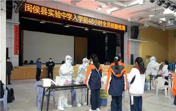 闽侯县实验中学入学前48小时全员核酸检测采样现场