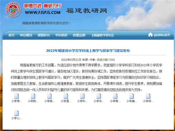福建教研网发布2022年福建省小学各学科线上教学与居家学习建议