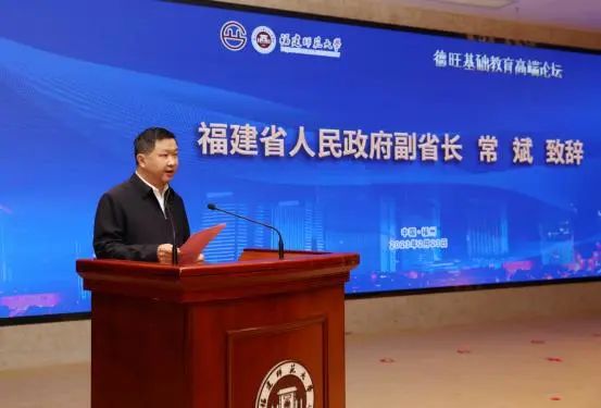 23日,德旺基础教育高端论坛开幕式在福州举行。全国政协教科卫体委员会副主任、教育部原副部长、中国教育学会会长朱之文,副省长常斌出席开幕式并致辞。