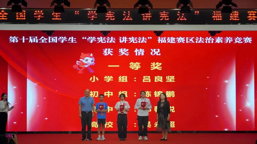 9月27日-28日,第十届全国学生“学宪法讲宪法”福建赛区总决赛在福州举行。省司法厅副厅长官文胜、省教育厅二级巡视员王越忠出席活动。省教育厅、省司法厅等有关部门业务处室负责人,各地市教育部门分管领导、法治机构负责人,以及中小学生选手与指导老师参加活动。