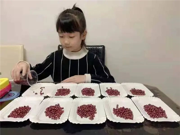 南安市柳城小学二年级学生利用红豆实践《生活中的大数》