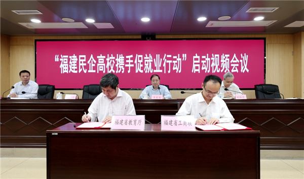为认真贯彻落实习近平总书记在宜宾学院考察调研时关于高校毕业生就业工作的重要指示精神,按照省委、省政府工作要求,充分发挥民营企业吸纳就业的重要作用,促进高校毕业生充分高质量就业,省教育厅、省工商联决定共同开展“福建民企高校携手促就业行动”。6月14日,启动视频会议在省教育厅召开。省委统战部副部长、省工商联党组书记李家荣,省委教育工委书记,省教育厅党组书记、厅长林和平出席会议并讲话。省委教育工委、省教育厅一级巡视员李迅,省工商联党组成员余建代表双方共同签署合作协议。省教育厅副厅长李绚主持会议。