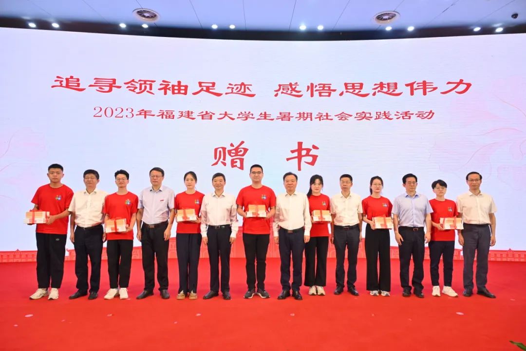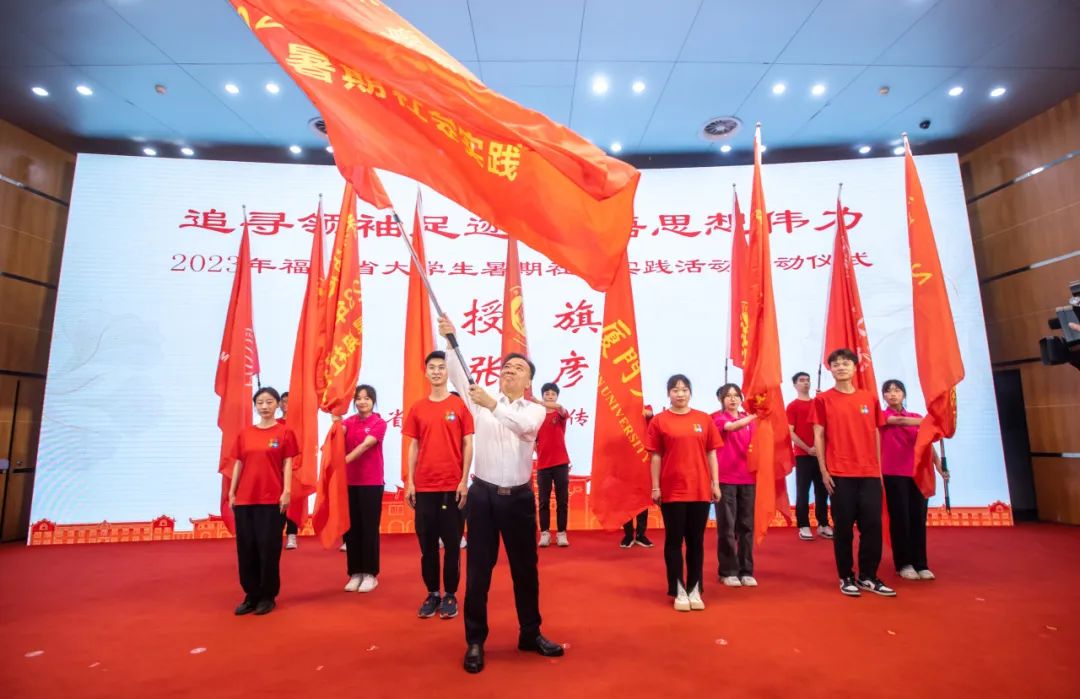 4日,由省委宣传部、省委教育工委、海峡出版发行集团联合组织开展的“追寻领袖足迹 感悟思想伟力”2023年福建省大学生暑期社会实践活动启动仪式在福州举行。省委常委、宣传部部长张彦为高校学生代表赠书,宣布实践活动正式启动,并为实践队授旗。