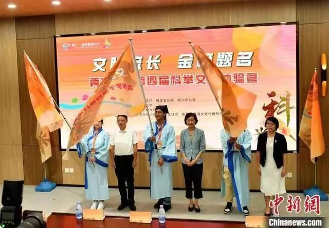 8月6日,由福建省教育厅、福建省台联、福州市台联联合主办的第十一届海峡青年节系列活动之两岸学子第四届科举文化体验营在福州启动。开营式上,省教育厅二级巡视员李燕华、省台联副会长欧阳迪莎、福建师范大学副校长陈庆华为两岸青年授营旗。营员们身着汉服肃整衣冠,行敬拜先师之礼,齐诵朱子家训,开启为期6天的科举文化之旅。