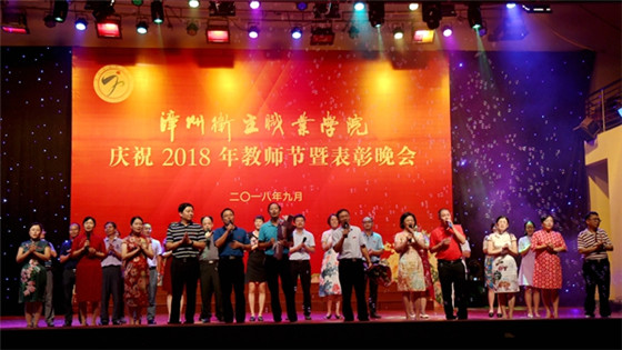 9月10日晚,漳州卫生职业学院体育馆灯火辉煌,歌声飞扬,学院2018年教师节表彰暨文艺晚会在此举行。学院领导林忠、沈国星、宋志海、沈小美、房立平、陈义三以及全体教职员工、退休教师代表等出席晚会。这是该校第一次以晚会的形式庆祝教师节,所有节目由师生自导自演。