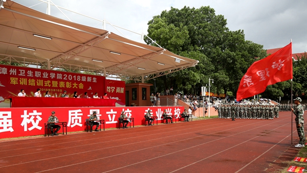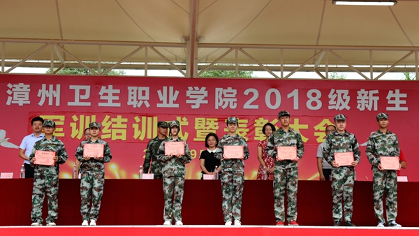 9月16日上午,漳州卫生职业学院在运动场举行2018级新生军训总结暨表彰大会。学院副院长沈小美,武警漳州支队中队长杨磊,承训官兵,各系书记(副书记),2018级辅导员、班主任和全体参训同学参加大会。