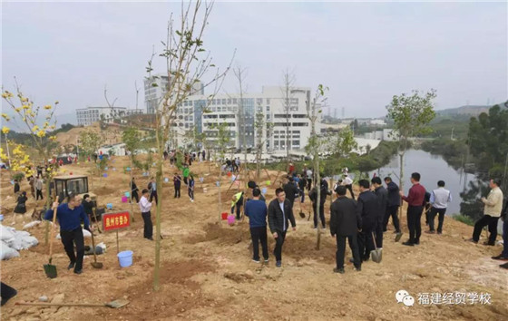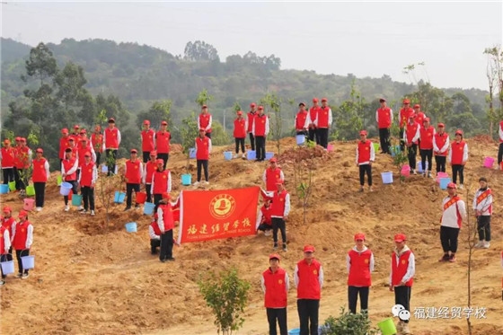 植树节当天,福建经贸学校200名学生志愿者参加劳动,共同构筑一道靓丽的校园风景线。