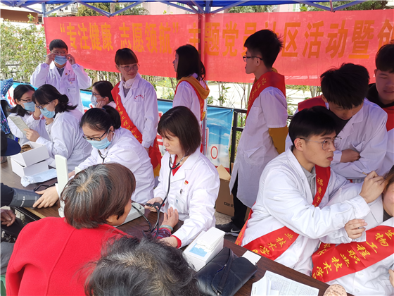 活动现场,全省党建工作标杆院系党总支、样板党支部创建正式启动。18名师生党员面向党旗重温入党誓词,27名学生入党积极分子和团员现场观摩;由10名执业医师、心理咨询师和康复治疗、中医养生保健、化妆品等专业构成的“双师”型党员教师分组带领学生,一边为社区居民提供健康咨询、预防保健、康复理疗等健康专业服务,一边为学生传授专业服务要点,“医、养、健、教”融合服务的方式倍受社区居民青睐。系党支部与社区党支部负责人借助志愿服务契机,现场沟通,探讨在校企合作基础上拓展党建合作的途径。